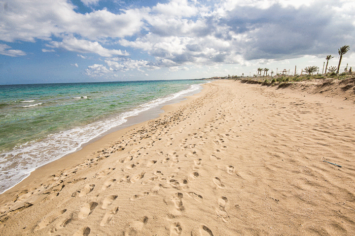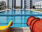 Long Beach, Ayios Yeoryios, in the Northern Cyprus region. There are two 15-storey residential